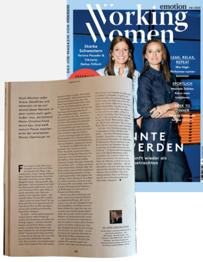 Public Performance & Visibility ist seit mehr als zehn Jahren Dr. Marie-Christines Thema. Daher hat sie sich dazu entschlossen, ihre Erfahrungen als PR-Expertin für C-Levels und Gründerin des größten Frauen-Business-Netzwerks Kölns in einem LinkedIn-Newsletter „Public Performance und Visibility“ regelmäßig zu teilen.